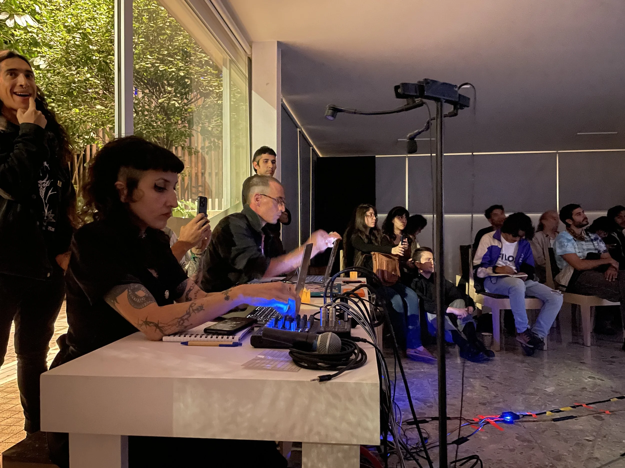 Encuentro de música, arte visual y arte sonoro que tuvo lugar el 27 de noviembre de 2024 en el Museo de Arte Carrilo Gil. Invitamos a Antonio Russek, pionero de la música electroacústica en México, a interpretar en vivo una pieza inédita para 8 canales, concebida especialmente para el espacio MACG. También contamos con la banda de improvisación libre Sindicato Dómina y un performance audiovisual que celebraba los 50 años del Museo Carrillo Gil interviniendo sobre su archivo gráfico y sonoro, diseñado por Pablo Martínez-Zárate, José-Luis Rangel y Sharon Aiza Engel, las personas detrás de La Fórmula Secreta 90.9 y Punctum Stans Studio. Completaron el programa un set de ambient por MJ Enemy en su presentación debut y una selección de vinilos por OTONO.