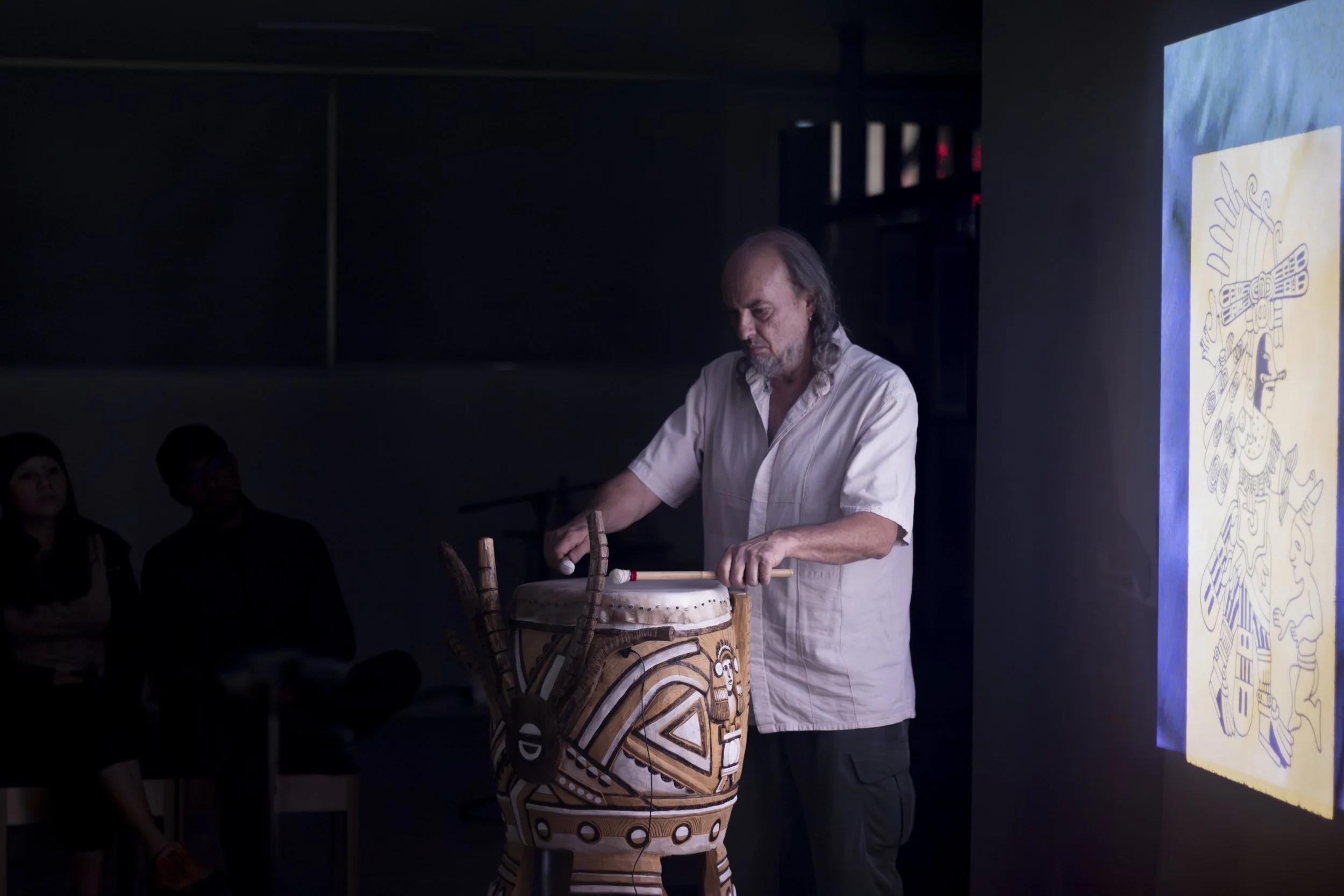 La cuarta edición del Museaum Sonorum, celebración conjunta de los aniversarios del programa de radio FM La Fórmula Secreta 90.9 y del estudio de audio Punctum Stans Studio, tuvo lugar el miércoles 24 de septiembre de 2025. Por segunda ocasión, el evento se celebró en el Museo de Arte Carrillo Gil, conocido por una tendencia histórica a dar cabida a expresiones artísticas en la esfera del performance y la expresión corporal y vocal. Est vez, cumplimos una ambición que teníamos desde hacía tiempo: juntar a artistas que no hubieran colaborado anteriormente para complementarse desde sus respectivas prácticas. Así, colaboré aportando imagen visual a la música electrónica experimental de Śūnyatā y de la dupla de rock/spoken-word formada por Renata Iberia y Eduardo Gante. El ensayo documental experimental Tomas Oblicuas, dirigido por Pablo Martínez-Zárate, se desplegó en una versión performática con música en vivo de Fernando Vigueras y Maricarmen Martínez. Dennis Noel López aportó imágenes documentales del istmo de Tehuantepec a la “gótica istmeña” de Ollin Vázquez y Pablo Martínez-Zárate complementó visualmente una improvisación musical de José Navarro Noriega.