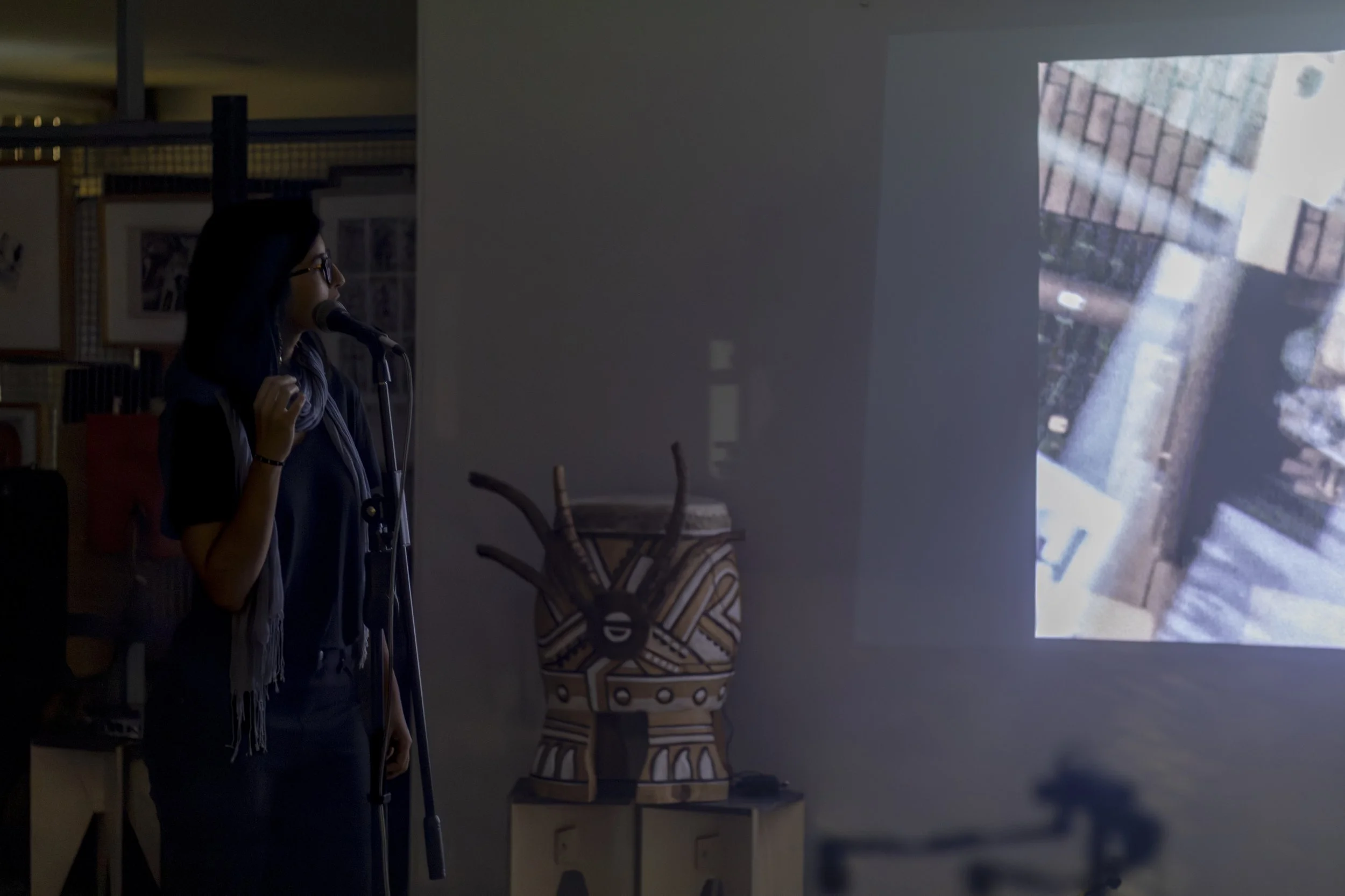 El 21 de mayo de 2025, se llevó a cabo en la Escuela Nacional de Artes Cinematográficas de la UNAM la jornada de procesos de investigación artística ‘Lo más profundo es la piel’. Organizada por estudiantes de la Maestría en Cine Documental desde la materia de Investigación para la Creación Documental (impartida por Pablo Martínez-Zárate) y con la complicidad de estudiantes y profesores del Posgrado en Artes y Diseño de la UNAM y la Maestría en Cine de la Universidad Iberoamericana, la jornada propuso un espacio para repensar la investigación desde la intuición, la práctica encarnada y el gesto, rompiendo con las formas tradicionales del saber académico. Cada integrante presentamos piezas artísticas que, desplegadas por toda la escuela, revalorizaban y ponían en primer plano no una obra terminada sino un proceso: por mi parte, presenté una pieza titulada Remontaje del cortometraje ‘Valle de lamentos’, una instalación interactiva que permitía al público jugar con el montaje original de mi cortometraje, proponiendo nuevos acomodos para las imágenes que representaban cada secuencia de la película. La jornada inició con una discusión en torno a la película Tomas oblicuas de Pablo Martínez-Zárate y culminó en un performance colectivo que unía mi investigación a la de Ileana Sarduy Prohenza. El cuerpo como pensamiento, el cuerpo como lenguaje.